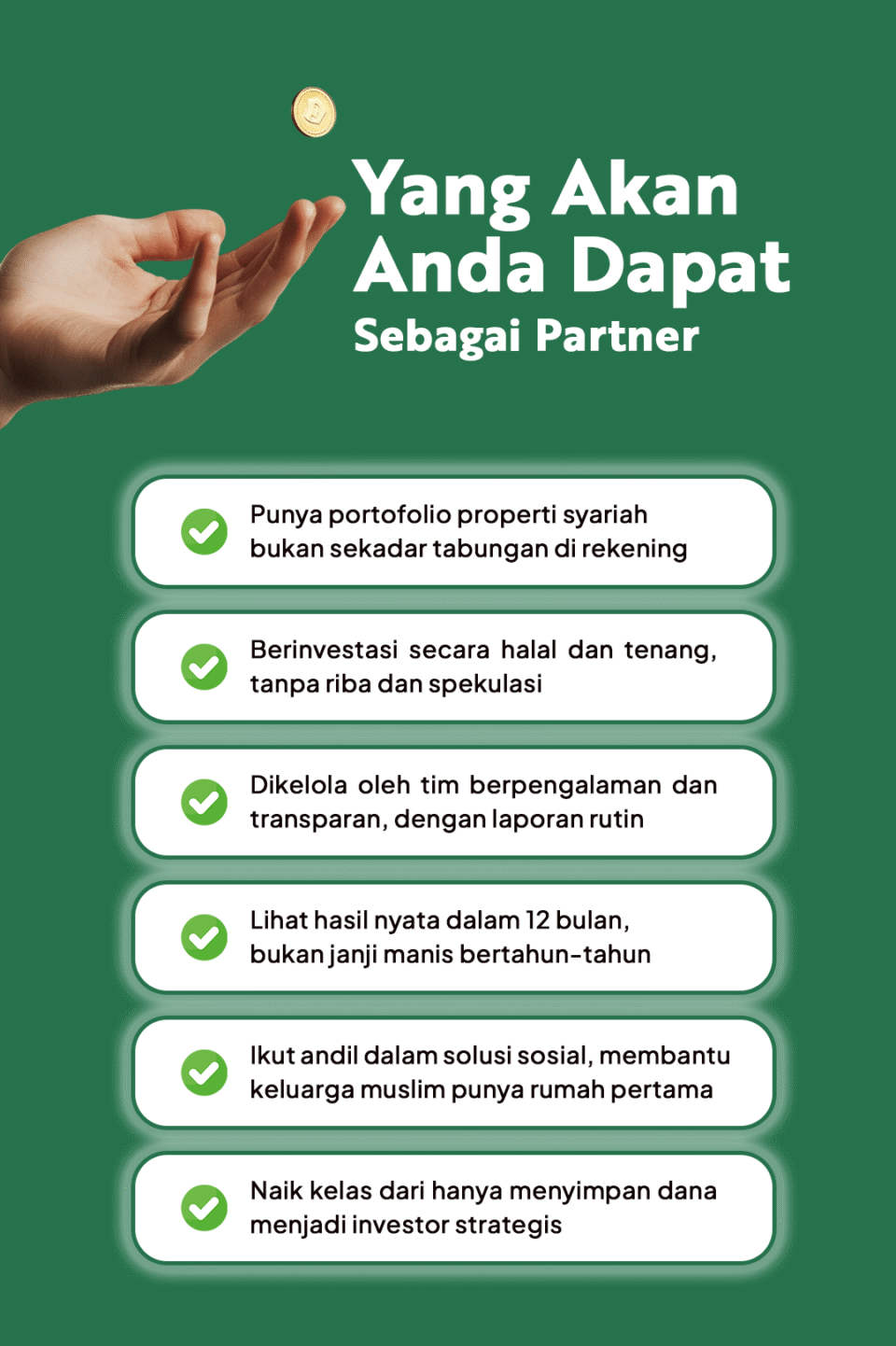 dan jutaan keluarga muslim di luar sana masih belum mampu memiliki rumah halal pertamanya. Di sisi lain, saya bertemu banyak orang yang sebenarnya ingin mengembangkan dana mereka, tapi: